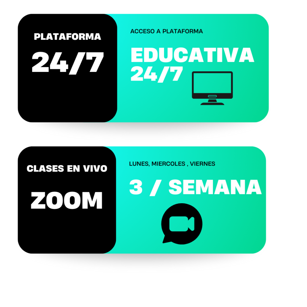 Clases vía Zoom los días Lunes, Martes, Miércoles, Jueves, Viernes y Domingos, según el nivel en el que te encuentres